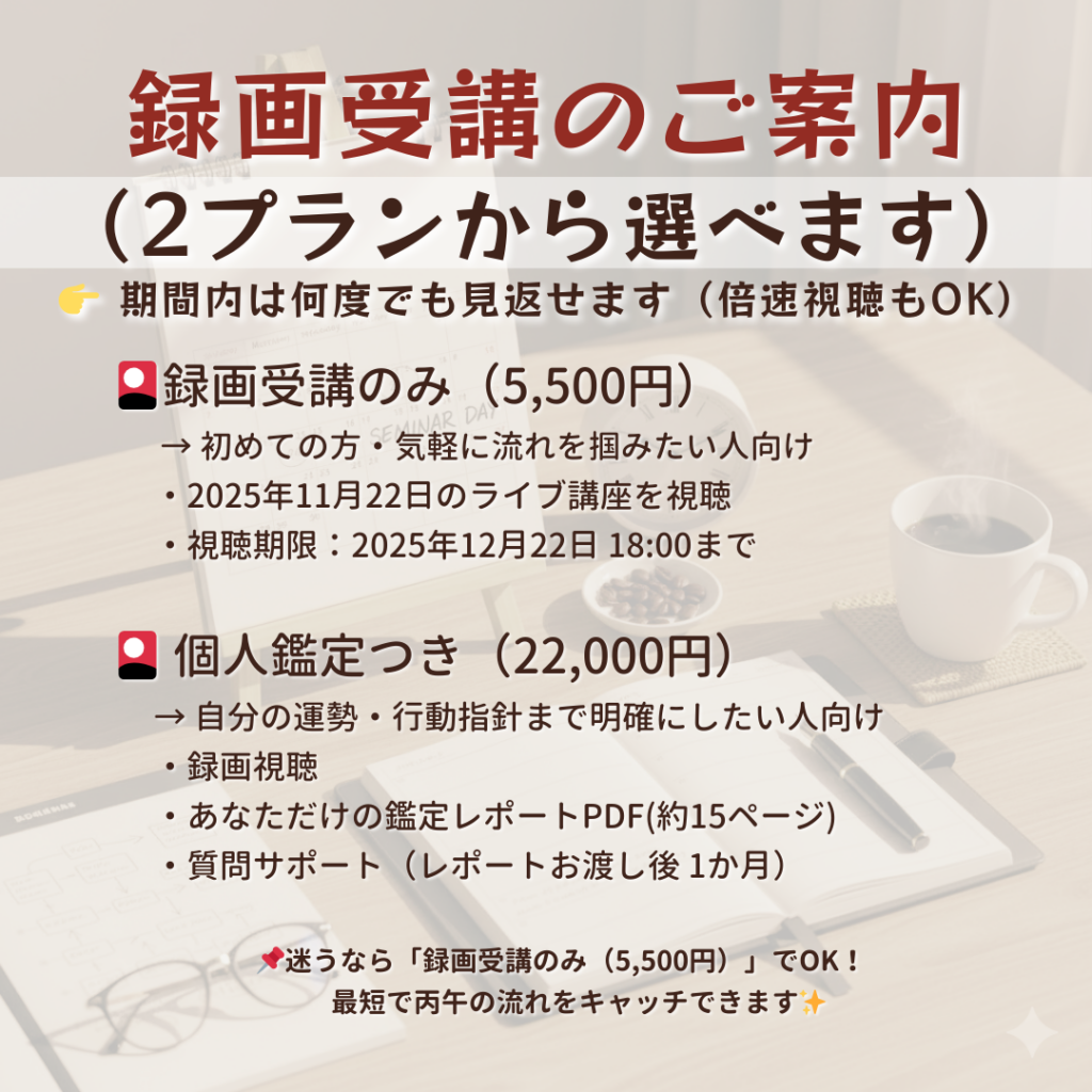 「《録画受講版》2026「丙午」年開運セミナー|個人鑑定つき(①を選択ください)