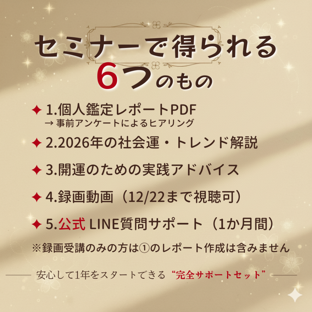 「《録画受講版》2026「丙午」年開運セミナー|個人鑑定つき