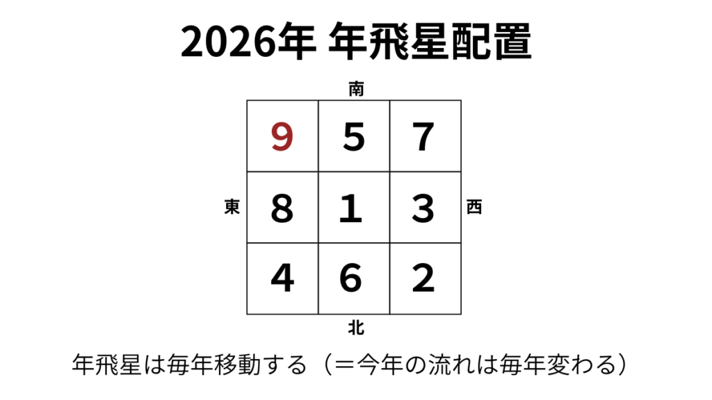 2026年は、年飛星の9が南東に巡ります。